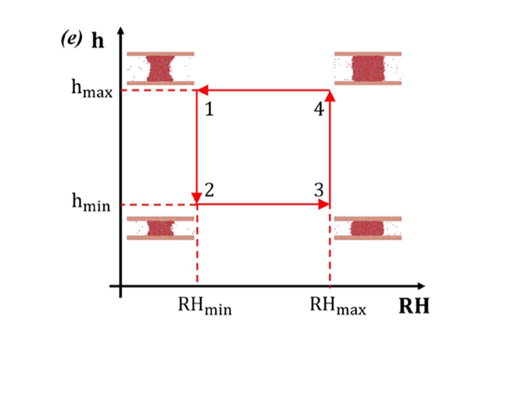 We show that nanoscale water capillary bridges (WCB) formed between patchy surfaces can extract energy from the environment when subjected to changes in relative humidity (RH). Our results are based on molecular dynamics simulations combined with a modified version of the Laplace-Kelvin equation, which is validated using the nanoscale WCB... Langmuir 2023, 39, 38, 13449-13458