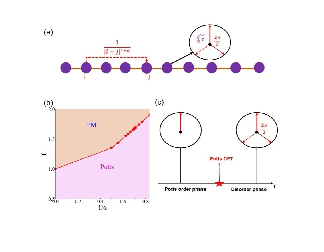 Based on large-scale density matrix renormalization group techniques, we investigate the critical behaviors of quantum three-state Potts chains with long-range interactions. Using fidelity susceptibility as an indicator, we obtain a complete phase diagram of the system. The results show that as the long-range interaction power 𝛼 increases... Phys. Rev. E 107, 054122